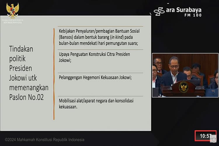 TIMES Bali/Ketua KPU RI Hasyim Asy'ari dalam sidang lanjutan PHPU di Mahkamah Konstitusi, Jakarta. (FOTO: Tangkapan Layar)