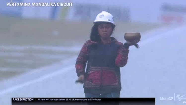 TIMES Bali/Raden Rara Isti Wulandari, sang pawang hujan saat Sirkuit Mandalika, Lombok Tengah, NTB, Minggu (20/3/2022) (FOTO: t-2.tstatic.net)